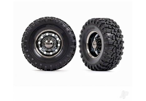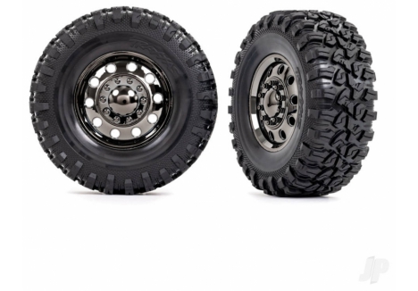 Traxxas Wheels & Tyres, Assembled, Glued (TRX-6 Big Rig 2.2in Black Chrome wheels, Canyon RT 4.6x2.2in tyres, foam inserts) (front) (2)/ centre caps (Black Chrome) (2) TRX8854