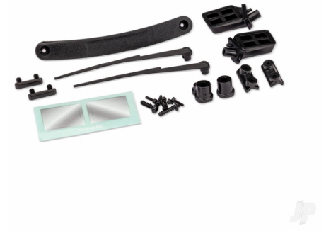 Traxxas Replacement body trim pieces for the 11011-series TRX-4 Nissan Pathfinder body. Includes side mirrors, windshield wipers, door handles, 2.6x10 mm screws (2), and 1.6x6 mm screws (6). TRX11017