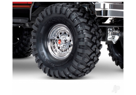 The Canyon Trail 1.9 tyres on the Traxxas Ford Bronco TRX82046-4-RED scale crawler with 2-speed transmission and Canyon Trail tyres are engineered for superior grip and scale realism. Their soft compound and tuned foam inserts provide excellent bite on rocky surfaces, while the 12mm steel hex drive ensures compatibility with popular wheel setups. These tyres enhance the crawler’s ability to traverse challenging terrain, offering both performance and visual authenticity. Combined with the portal axles and advanced suspension, they make the TRX-4 a formidable trail machine.