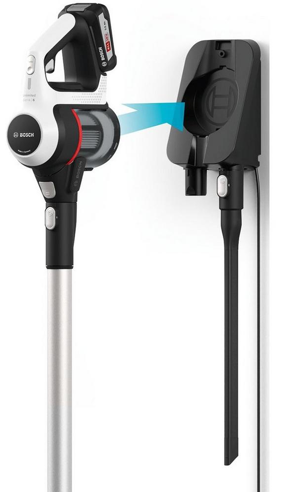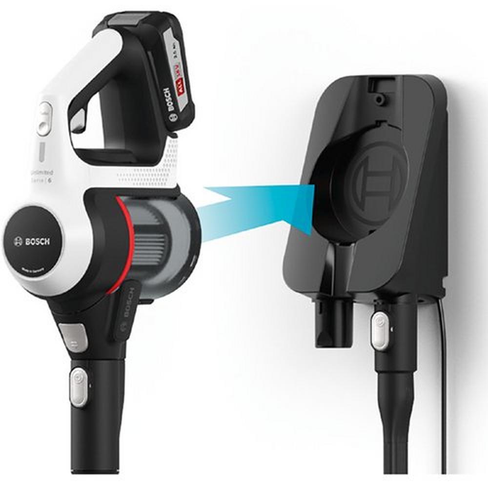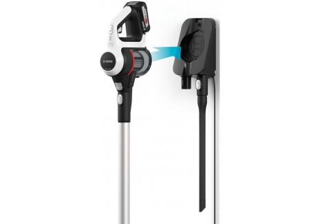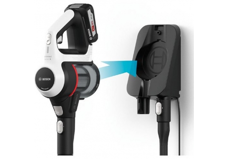 Engineered with Bosch's advanced battery platform, the vacuum uses replaceable lithium-ion batteries to ensure consistent suction power and long-lasting performance. The convenient wall mount keeps your cleaner accessible and neatly stored, while the 2-in-1 design allows you to clean from floor to ceiling — and even in your car.