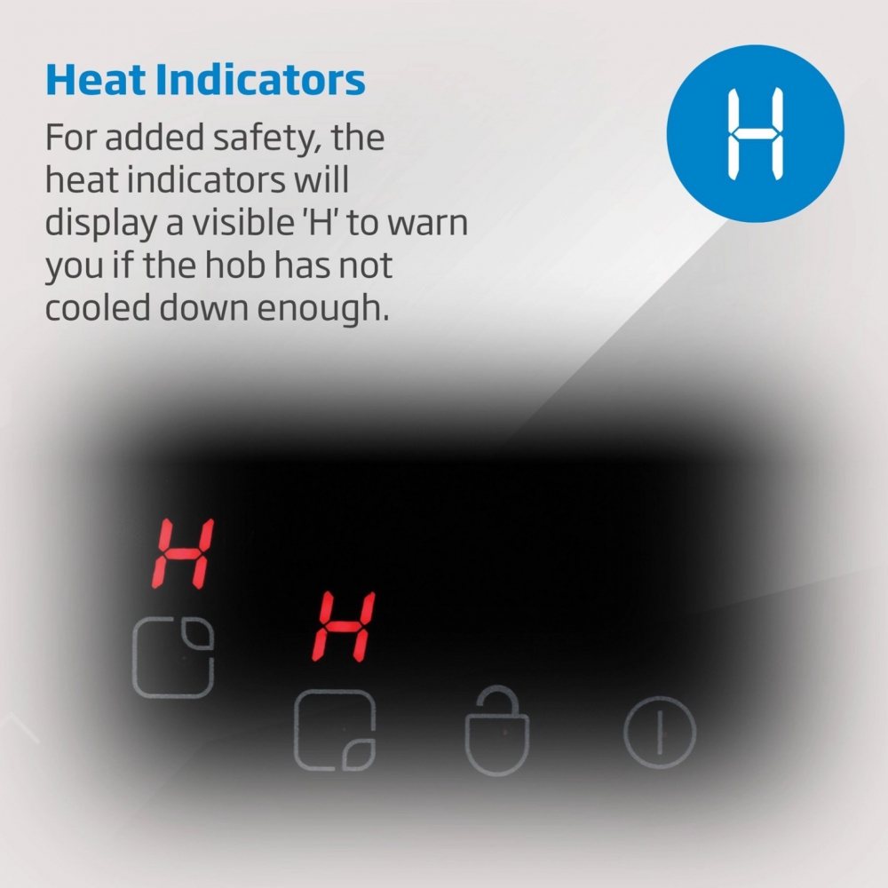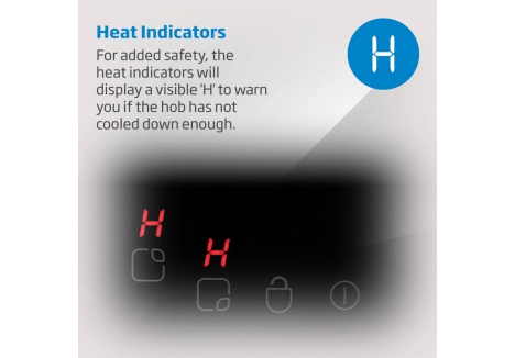 Safety is a key feature of the Beko 58cm ceramic hob black. Built-in residual heat indicators provide a clear visual warning when any of the cooking zones remain hot. The bright 'H' symbol remains lit until the surface has cooled to a safe temperature, reducing the risk of accidental burns. This safety feature is especially beneficial in busy family kitchens or homes with children.