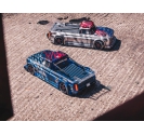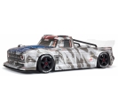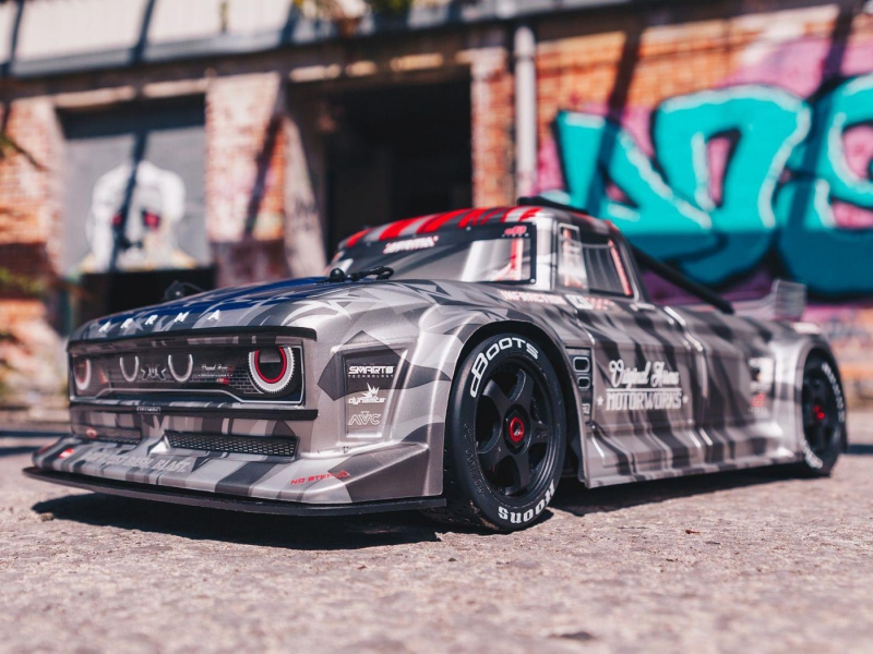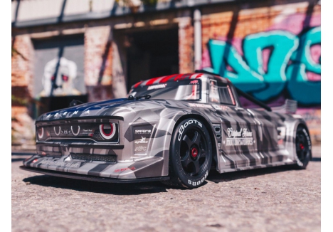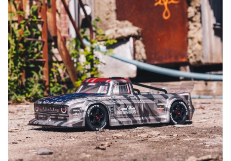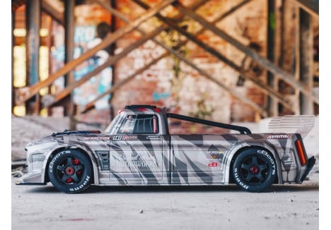 The ARRMA C-ARA7615V2T2 brushless street bash truck is a 1/7 scale all-road RC car engineered for high-speed aggression and resto-mod style. Finished in silver matte gloss, this 4WD vehicle combines a mechanical handbrake, Smart telemetry electronics, and aerodynamic bodywork for unmatched control and customization. Whether you're drifting through asphalt, blasting over gravel, or cornering on oval tracks, the ARRMA C-ARA7615V2T2 4WD resto-mod vehicle delivers 80+ mph performance with scale realism and rugged durability. From its full-width splitter to its rear diffuser and adjustable wing, every detail is tuned for aerodynamic dominance.