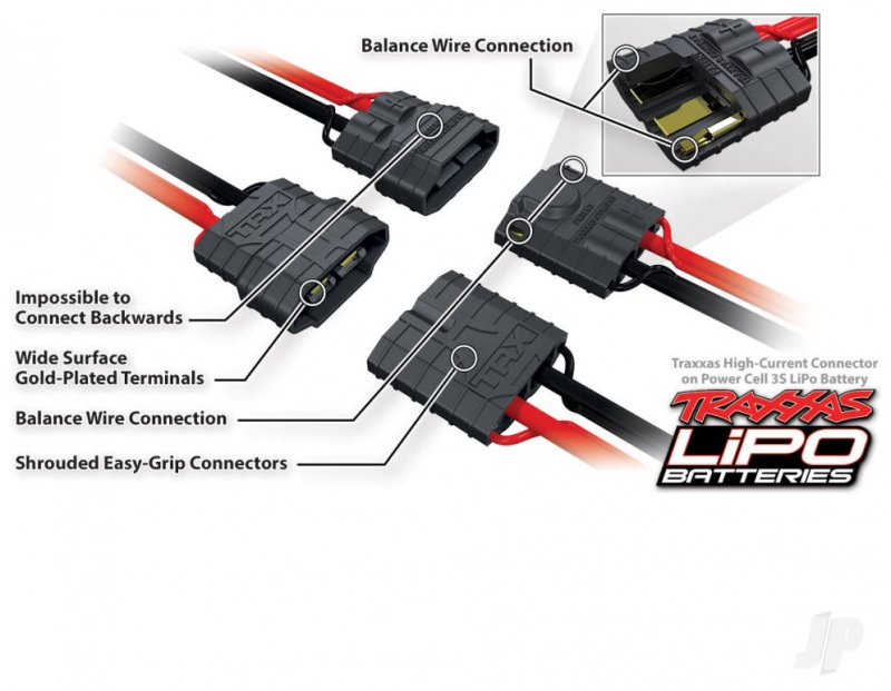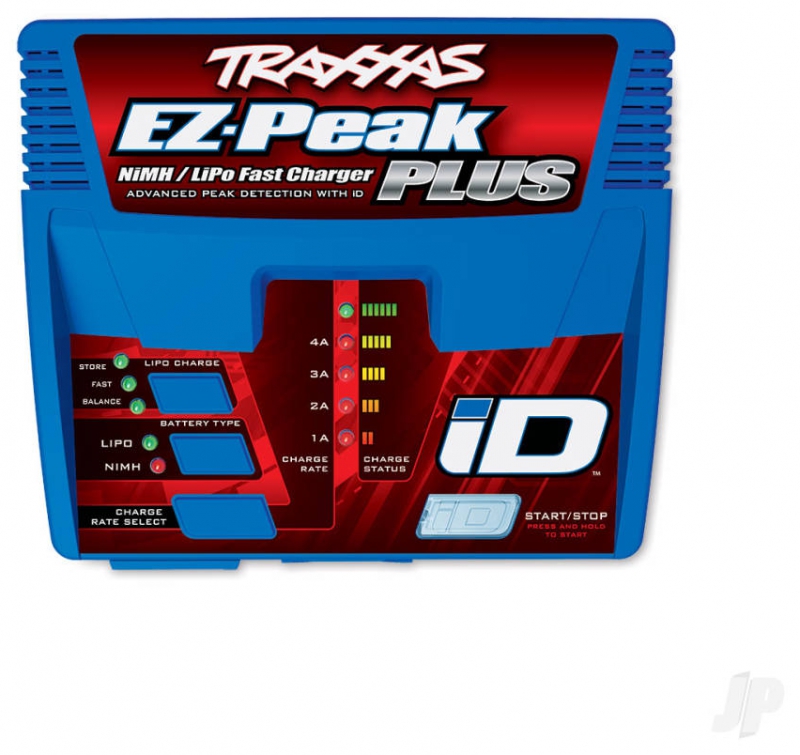 The Traxxas iD battery system is the easiest and safest way to charge your Traxxas batteries. The EZ-Peak Plus recognises Traxxas iD batteries and in an instant automatically configures and optimises the charger settings. There's no need to be a battery expert or learn how to navigate complex menus. Just plug in a Traxxas iD battery and EZ-Peak Plus (#2970) does all the work for you. The integrated balance connector on Traxxas LiPo iD batteries eliminates fragile balance wires and connectors, along with the need for external balance boards. At the press of a button, the EZ-Peak Plus' Storage Mode protects your LiPo battery investment by safely preparing the batteries for extended storage. 4-amp fast charging and advanced high-resolution peak detection deliver a perfect charge every time. The EZ-Peak Plus is backed by the Traxxas Lifetime Electronics Warranty for years of reliable service.