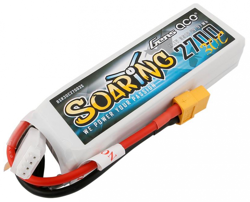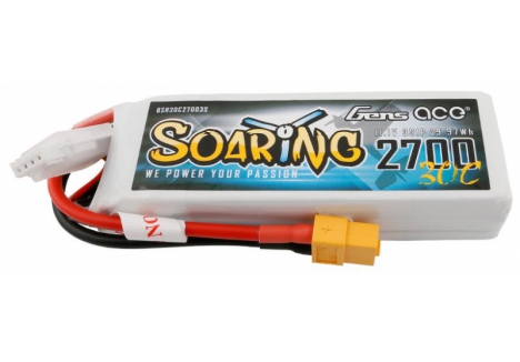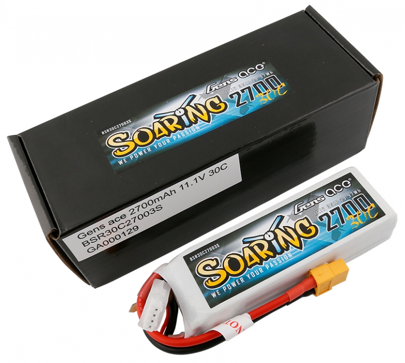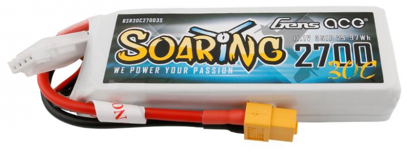Gens ace Soaring 2200mAh 11.1V 30C 3S1P Lipo Battery Pack provides you high quality and reliable power for your radio controlled airplanes. It uses stable automatic stacking technology to enable a single cell to reach the capacity of 1300mAh. Overall this is a great choice for your radio controlled hobby.