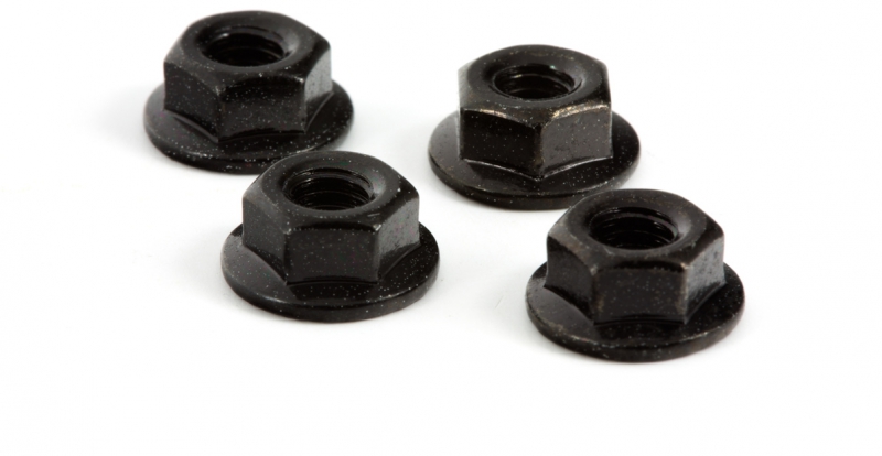 Each nut is precision-engineered with a serrated design that locks firmly against the wheel to prevent loosening during operation. The black anodised finish not only enhances durability but also complements most RC vehicle colour schemes for a clean, professional look.