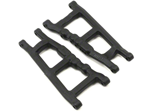 Tech Notes: Replaces stock Traxxas #3655R & #3655X. RPM A-arms will not fit the newer Fiesta ST Rally. RPM arms are sold in sets of 1 – left and 1 – right A-arm in each package. Two packages will be needed to complete one truck. The upper hinge pin hole of the rear axle carriers cannot be used (not a stock location for the Slash 4×4) due to strengthening designs that reduce the clearance around the rear axle.