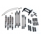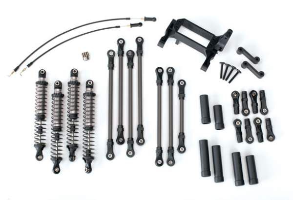 The Long Arm Lift Kit raises your TRX-4 to accommodate larger 2.2" wheels and tyres for more terrain-conquering ground clearance. The kit includes longer GTS aluminium shocks, springs, driveshafts, suspension links, and T-Lock cables. A revised mount lowers the servo to maintain proper suspension and steering geometry.