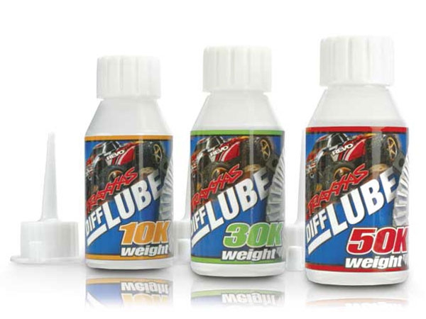 Traxxas performance differential oils make it easy to increase or decrease the limited slip action of the gear differential by using higher or lower viscosity oil. Depending on the track conditions, altering the limited slip capability can enhance turning performance for faster exit speeds.
