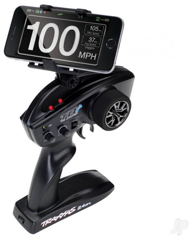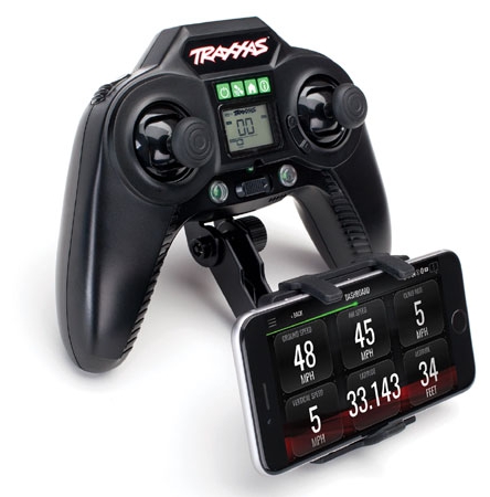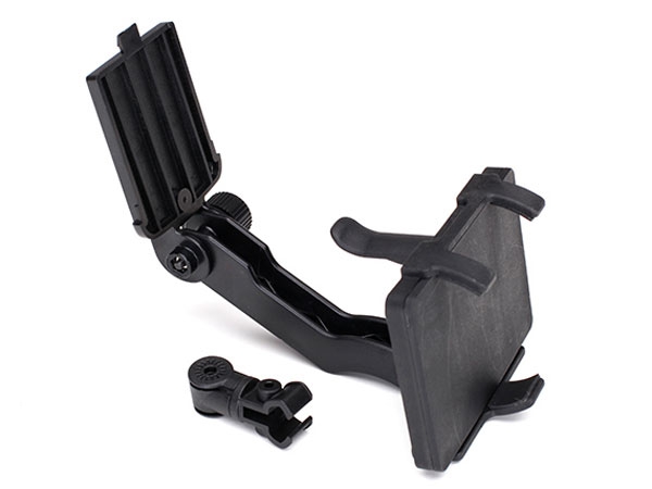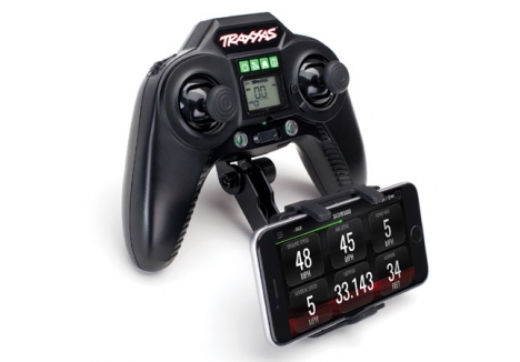 The new Traxxas RC Transmitter Phone Mount (#6532) provides a convenient mounting base for your mobile device on TQi and Aton transmitters. This mount makes monitoring real-time telemetry and adjusting settings simple, keeping your device secured to the radio for easy access. Spring loaded clamps hold a variety of mobile devices to the mount, and the base swivels and tilts to customize the position. Get the most from Traxxas Link telemetry accessories and apps with the new Transmitter phone mount.