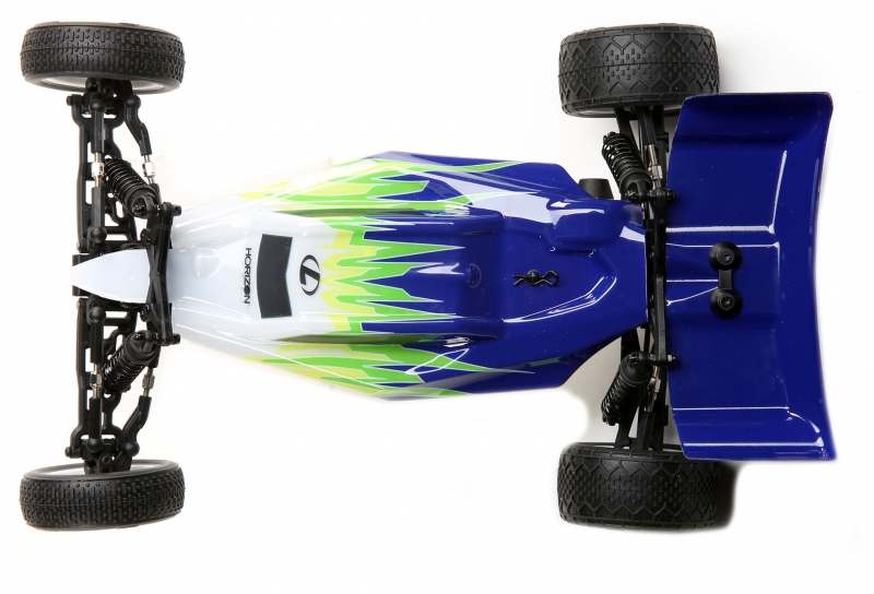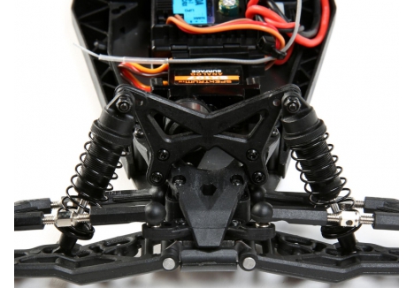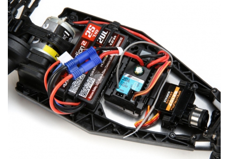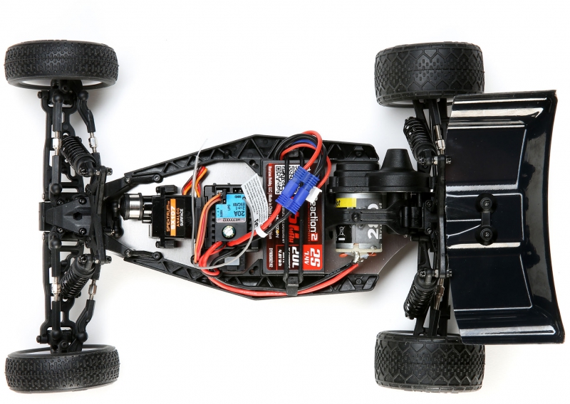 - Servo: Spektrum SX107 metal gear – featured in the LOSI 2WD buggy with servo saver and full ball bearings, delivers high torque and includes servo saver for impact protection