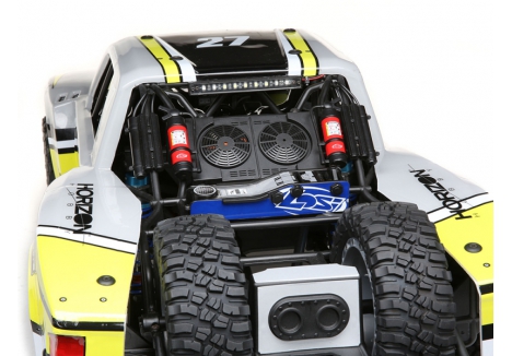 The Losi Super Baja Rey LOS05021T1 with AVC control and LED light bars is a yellow 1/6 scale desert truck engineered for serious off-road performance and scale realism. Built on a reinforced 4mm anodised aluminium chassis and integrated with a super-rigid composite roll cage, this large-scale brushless 8S truck delivers exceptional durability and aggressive styling. Whether you're tackling rough terrain or launching into wide-open desert runs, the Super Baja Rey combines long travel suspension, dual spare tyres, and a bottom-loading battery tray for unmatched usability and control. With licensed Method Racing Beadlock wheels and BFGoodrich Mud-Terrain T/A KM3 tyres, this truck is ready to dominate any surface with authority.