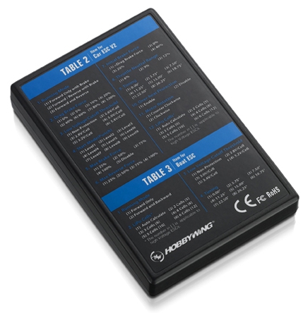The Hobbywing LED Program Card is used to program Hobbywing XERUN, QUICRUN and EZRUN series ESC's. It features a user friendly interface and is easy to use. Package includes program box and 3-wire male/male plug for hooking the programmer to the ESC.