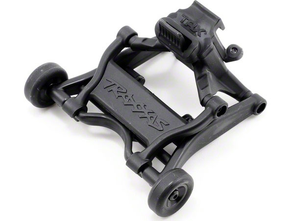 The accessory Revo wheelie bar assembly features a unique quick release design that is compatible with Revo trucks, nitro and electric. The wheelie bar assembly is easy to install for controlled wheelies on demand. Four snap-in adjustment positions allow you to choose how extreme you want your wheelie action to be. When it is time to head off-road, a convenient quick release tab makes removal and installation a snap. The wheelie bar mount is compatible with all factory Revo configurations, including sway bars and wing mounts.