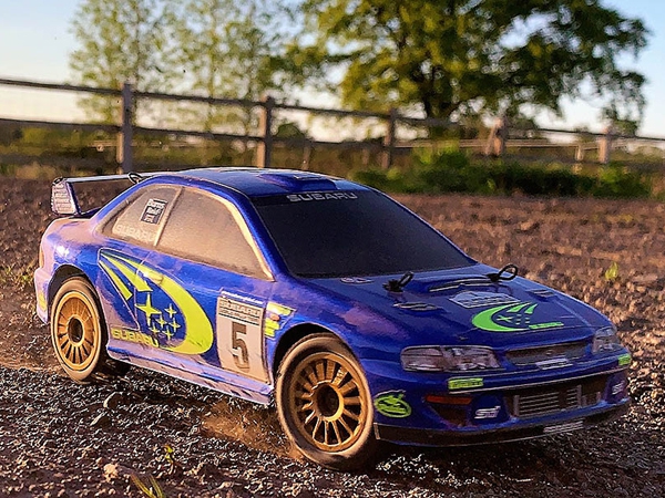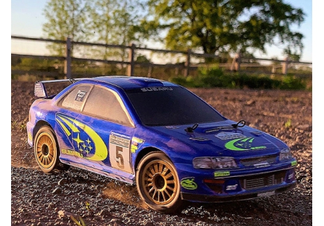 - Body: Polycarbonate – factory painted in Subaru WRC blue with licensed trim and high-downforce wing