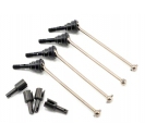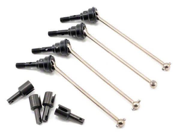 Traxxas Steel Constant Velocity Driveshafts are designed to handle the extreme horsepower and articulation that Traxxas vehicles can dish out.The U-joint pins are held captive by a heavy duty o-ring so you never have to worry about losing a pin. The nickel plated steel shafts and black oxide treated accents not only look good, they are designed to exacting specifications for ultimate strength and performance. These are simply the most advanced steel CV driveshafts available.