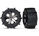 Traxxas paddle tyres offer unbeatable traction in sand, snow, mud, or any loose surface. Paddle tyres feature outrageously strong scoops combined with strengthening ribs and TSM-rated glue joints to provide a whole new dimension in traction and off road fun. Paddle tyres come mounted and pre-glued to 2.8" All-Star black chrome wheels for no-hassle, out-of-the-box bolt-on traction. Fits 12 mm hex, 2WD electric rear.