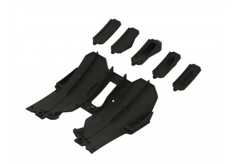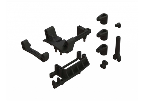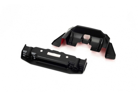 - Multi-part undercut body design with adjustable front and rear body mounts.