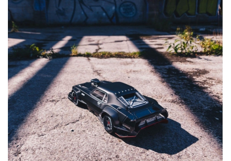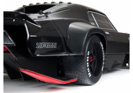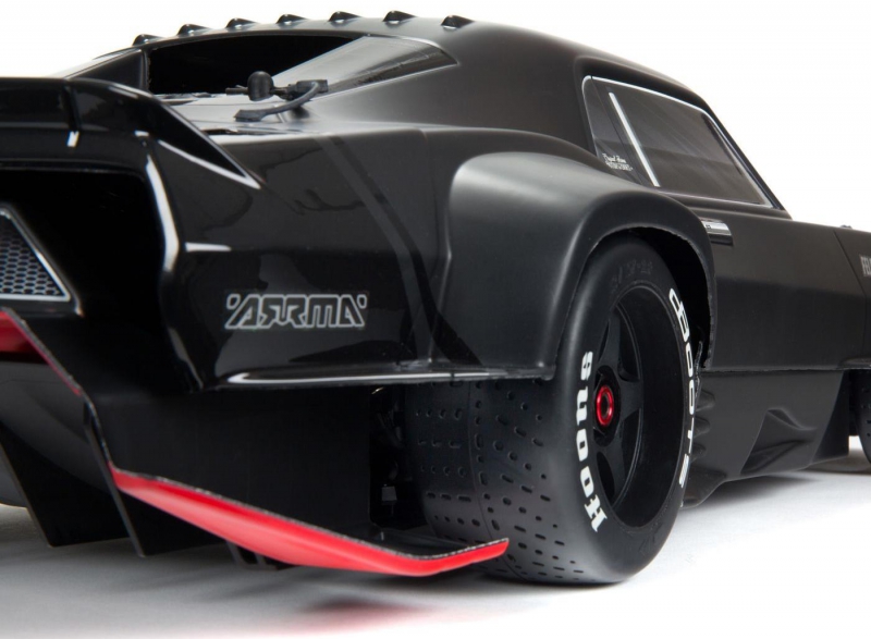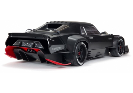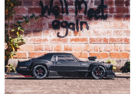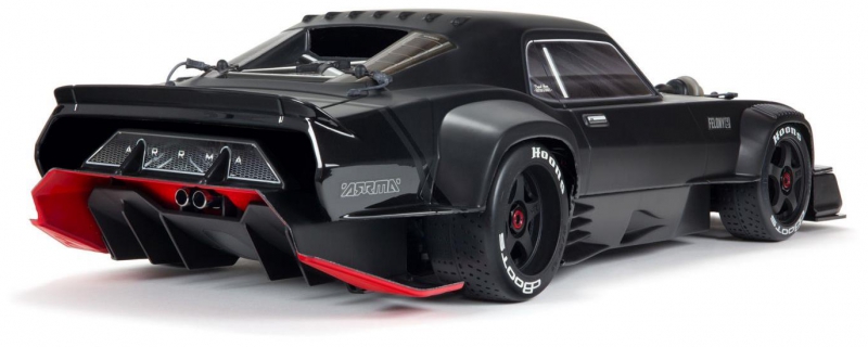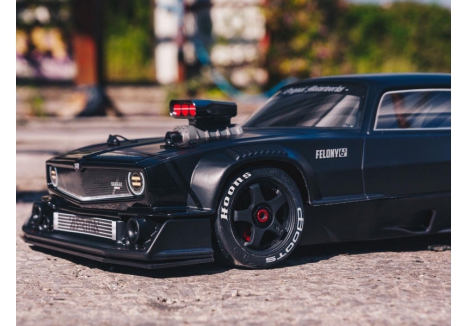 The ARRMA FELONY 6S BLX 1/7 Street Bash 4WD RTR in Black brings resto-mod muscle car attitude to a proven BLX platform, delivering all-road control, high-speed stability and comprehensive Spektrum Smart telemetry in a ready-to-run package. A 3mm 6061-T6 aluminium chassis, heavy-duty steel driveshafts and all-metal diff internals underpin the performance, while the Spektrum Firma 150A Smart ESC and 4074 2050Kv brushless motor unlock thrilling acceleration and 80+ mph potential in optimum conditions with a 6S LiPo and the included speed pinion. The multi-part, undercut body with an adjustable wing, front splitter and rear diffuser complements the five-spoke wheels wrapped in dBoots Hoons all-road tyres, with larger rears and matched front/rear gearbox ratios for authentic muscle handling across on-road, dirt roads and oval tracks.