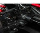 - Rugged suspension – oil-filled, adjustable aluminium shocks on black-anodised towers