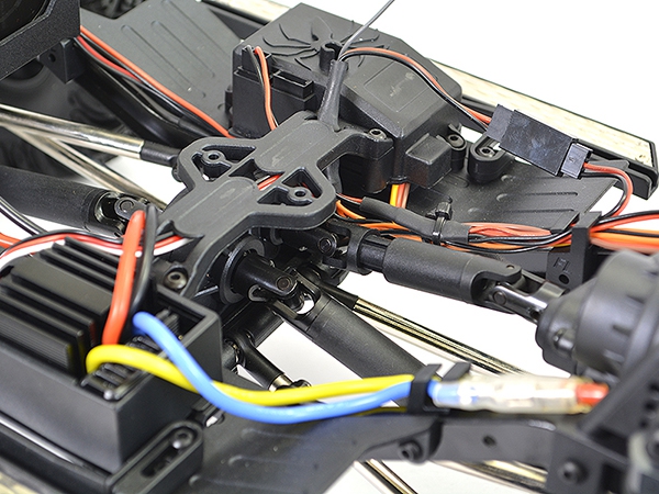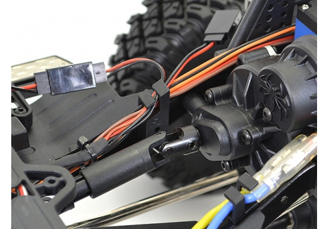 - Steering System: Raised chassis-mounted servo with panhard bar – stabilizes axle movement