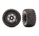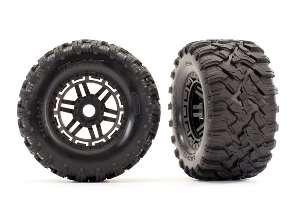 Rugged Maxx MT all-terrain Tyres features a unique tread pattern with multiple layers of biting edges for sure-footed traction on just about any surface. The heavy duty rubber compound is TSM-rated for high-speed applications and resists tearing on rough terrain. tyres come pre-mounted with foam inserts and glued to 2.8" dual-profile black Maxx wheels with a black beadlock-style ring. Fits 17 mm splined hex, front or rear.