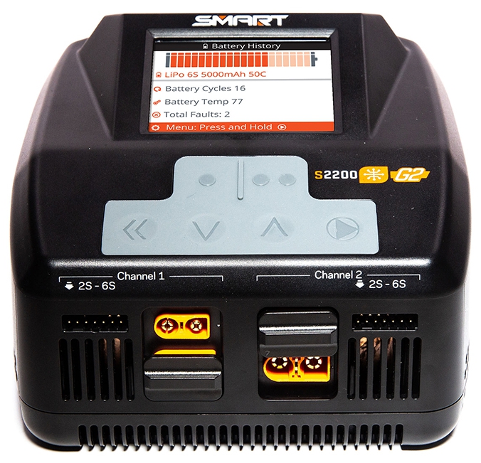 The S2200 Smart G2 AC Charger's updated, improved user interface features fresh, intuitive menus, icons, and navigation tools. Its clear, easily understandable indicators of Smart battery history and performance provide the information you need to make the best decisions about your batteries when putting gear together for a day at the field or track.