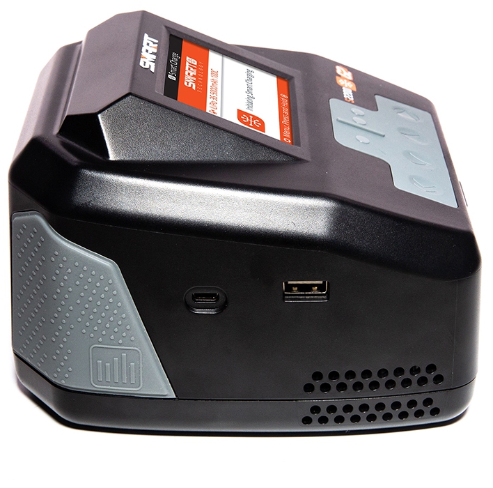 USB input and output ports enable you to charge secondary devices and to update the charger's firmware so you always have the latest version. The S2200 Smart G2 AC Charger also includes an ON/OFF switch, cooling fan, detachable power cord, and sleek case with rubber grips that fits perfectly on your workbench and in your pit or field bag.