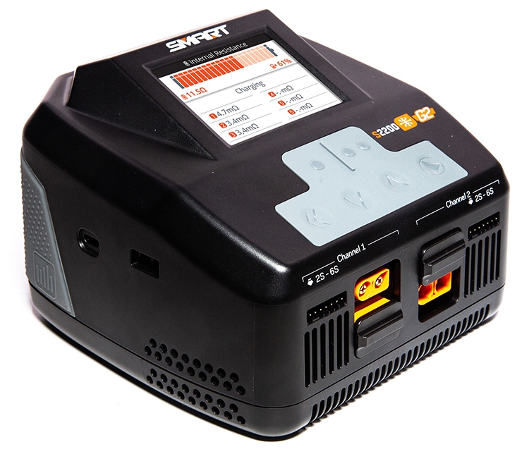 With up to 200W power per channel or 380W on one channel for fast charging, plus the ability to charge batteries on either the IC3® or IC5® integrated output ports, the S2200 charger delivers a versatile and truly hassle-free charging experience. The S2200 charger works with virtually any RC battery and is backwards compatible with EC3 and EC5 connectors. Use it together with Smart G1 or G2 batteries and you'll be amazed by its incredible functionality and performance.