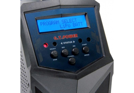 The GT Power X4 Multi-Chemistry professional charger / discharger offers a simple and safe solution to battery management. With four outputs, up to four batteries can be independently charged at the same time, using completely separate charge or discharge routines. With a choice of mains power or 11-18V DC input, the X4 is ideal for use at home or at the field. The backlit LCD screen makes it simple to select all of your charge parameters while also monitoring your battery's status in any light. Compatible with today's latest cell technologies, the X4 is the serious choice for charging LiPo, LiHV, LiIon, LiFe, NiMH, NiCd and Pb batteries