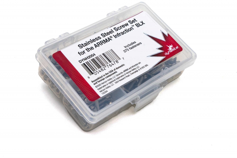 The Dynamite Stainless Steel Screw Set – ARRMA Infraction BLX – DYNH2054 is a comprehensive hardware solution for drivers seeking a durable, rust-resistant upgrade over stock or worn fasteners.