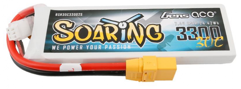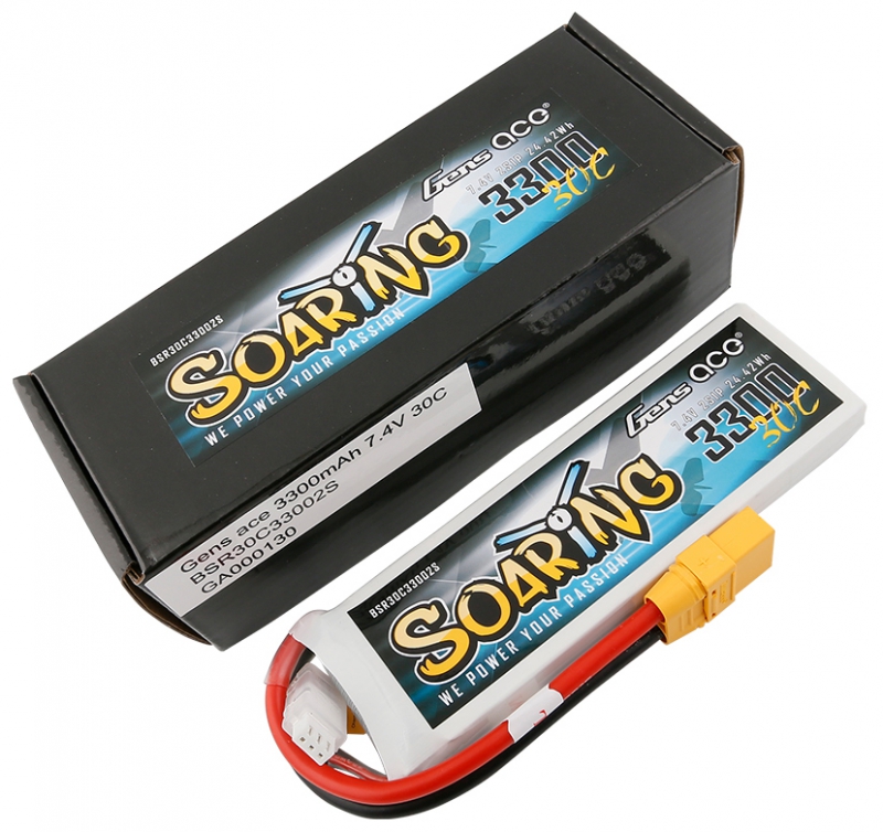 Gens ace Soaring 3300mAh 7.4V 30C 2S1P Lipo Battery Pack is a good choice for rc helicopter, rc plane, rc boat and rc car, and 3300mAh battery with best price and local service, it's have high quality.