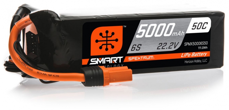 - (1) Spektrum O-SPMX50006S50 22.2V 5000mAh 6S 50C Smart G1 Air LiPo Battery with IC5 Connector