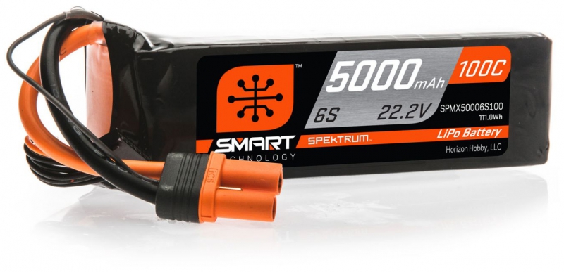 - Product Type: Spektrum O-SPMX50006S100 Smart LiPo battery 6S 5000mAh 100C with IC5 connector and microchip, Spektrum O-SPMX50006S100 22.2V Smart battery with auto discharge and alloy heat shield, Spektrum O-SPMX50006S100 6-cell LiPo with 12 AWG wire and JST/XH balance connector, Spektrum O-SPMX50006S100 with soft case, 3C max charge rate, and 600g+ weight, Smart LiPo battery with IC5/EC5 compatibility and integrated charge protection circuitry, Spektrum 6S battery for aircraft with Smart memory and 100C continuous discharge