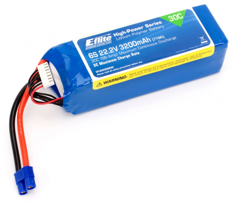 - (1) E-flite 22.2V 3200mAh 6S 30C LiPo Battery with EC3 Connector
