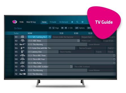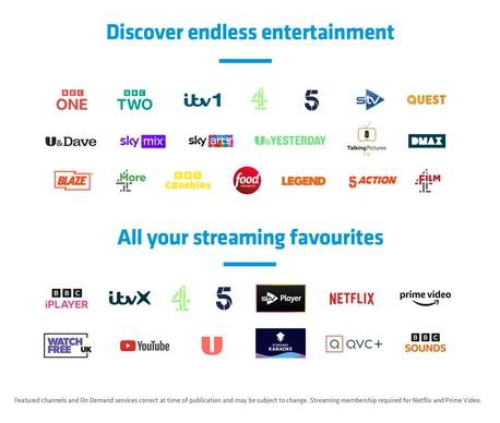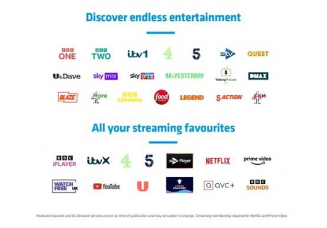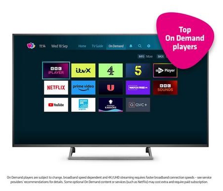 - Smart platform with catchup services – BBC iPlayer, ITV Hub, My5, STV, UKTV Play and more on demand