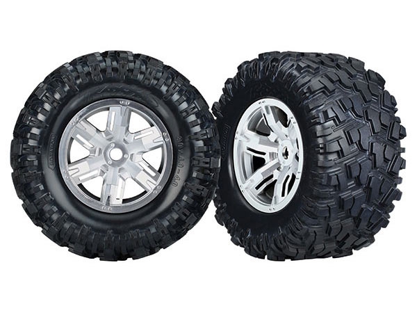 Traxxas Wheels and Tyres (Satin Chrome Wheels and AT Tyres) (2)