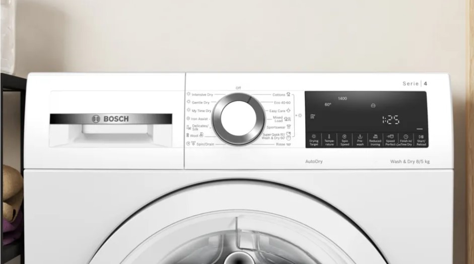 This bosch 1400 spin washer dryer comes equipped with AutoDry technology, which constantly monitors moisture and temperature. Whether you need clothes that are ready to iron or completely dry and ready to fold, AutoDry ensures precision every time. It helps prevent overdrying, which can damage fabric fibres, and protects your clothing while saving energy.