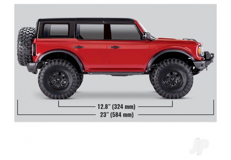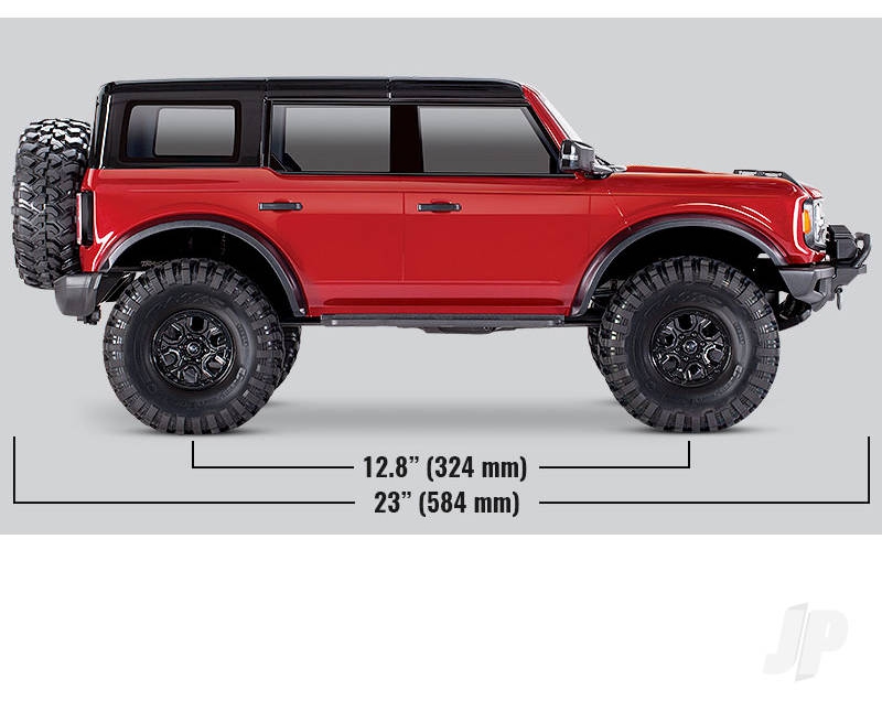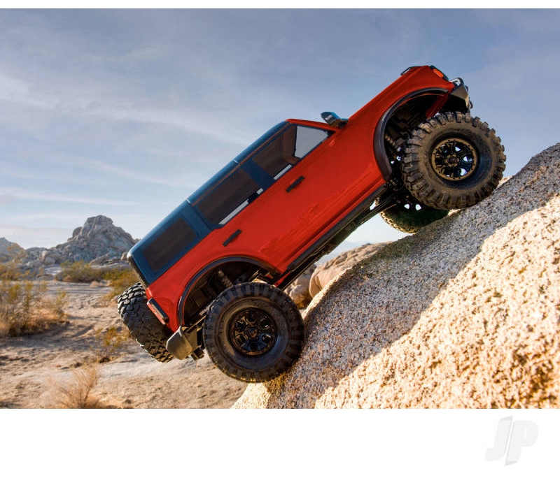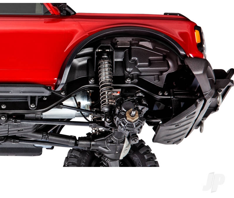 The features that make TRX-4 an award-winning favourite are all built into the Bronco. That includes high-clearance portal axles; remote-operated T-Lock differentials; High/Low 2-speed transmission; aluminium GTS shocks; steel ladder frame and more.