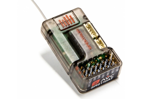 The SPMSR6110AT receiver throttle port includes Smart Throttle. This port will automatically detect when a Smart throttle electronic speed control is plugged in and the throttle port will begin to operate in Smart throttle mode. When combined with Spektrum Smart LiPo batteries with IC series connectors can pass along battery data from compatible Spektrum Smart batteries. The SPMSR6110AT also features two integrated telemetry ports that are compatible with telemetry capable DSMR transmitters. If a standard ESC or servo is plugged into the throttle port on the SPMSR6110AT receiver, the throttle port will operate normally like any conventional receiver.
