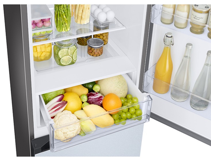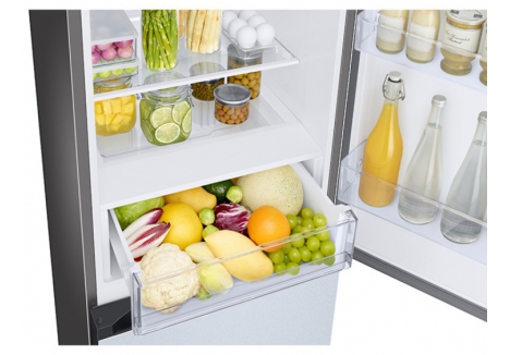 The Samsung fridge freezer with 114L freezer and 230L fridge storage balances chilled and frozen zones for flexible meal planning and bulk preservation. Crisp vegetable drawers safeguard greens at optimal humidity, while door-mounted racks hold condiments and beverages for quick access. In the 114 L freezer compartment, four transparent drawers neatly organise frozen produce, meats and pre-prepared meals. Rapid Freeze mode engages powerful cooling to lock in freshness for delicate items like seafood or berries, ensuring peak texture upon thaw. Whether stocking up on weekly groceries or freezing batch-cooked dishes, this fridge freezer supports every storage strategy.