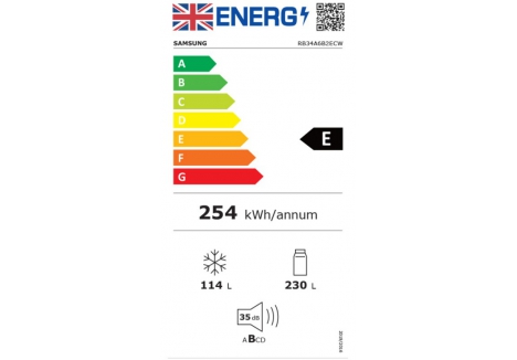 Enhance culinary routines with the Samsung RB34A6B2ECW fridge freezer, a sleek centrepiece in contemporary living spaces. Featuring a combined 344 L capacity—230 L for fresh groceries and 114 L for frozen essentials—this frost-free marvel adapts to every storage need. Precision temperature management guarantees optimal preservation, while integrated LED lighting casts a bright, energy-efficient glow across every shelf. Reversible hinges accommodate left- or right-hand kitchen layouts without compromise, and a dedicated wine shelf cradles bottles at the perfect angle. Seamless performance links innovative cooling technologies with a minimalist cotton-white façade. The Samsung Bespoke 1.85m fridge freezer white delivers refined versatility for households demanding both style and substance.