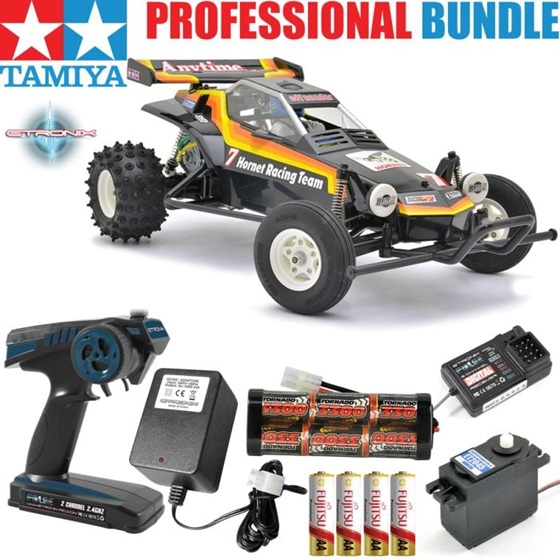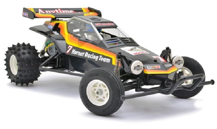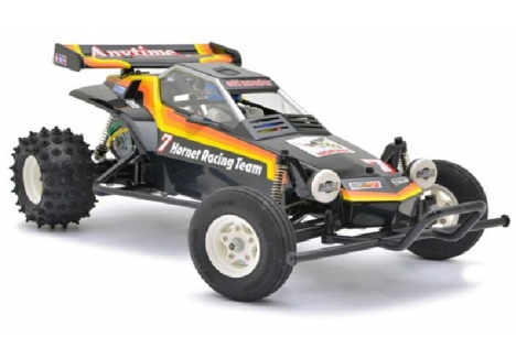 The Legend Lives On! The revolutionary 1984 2WD off-road buggy is back and more fun than ever before! The Hornet stands as one of Tamiya s most popular R/C cars ever released, helping launch a 2WD R/C buggy boom worldwide. Featuring excellent performance on both dirt and on-road tracks, this awesome buggy can take on any type of terrain. Just like the original, this re-release features an easy to assemble chassis and drivetrain consisting of a durable but lightweight ABS resin bathtub frame, diff gear loaded sealed gearbox, oil filled rear dampers, powerful RS 540 motor and high performance suspension system. The Hornet is perfect for those that used to have one, those that have always wanted one, and for those that want a revolutionary buggy that has earned its place in R/C history.
