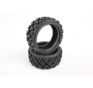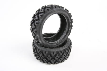 The Tamiya Rally Block tire are packaged in a pair. These are the stock replacement tires that are found in many of Tamiya's Rally kit R/C cars. They feature a cross block design and are made of durable rubber material. These tires will fit standard Tamiya touring car wheels (26mm width).