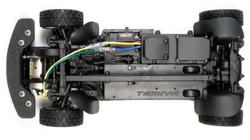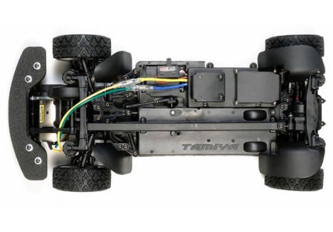 The Tamiya XV-01 chassis rally car is engineered for versatility. Its belt-driven 4WD layout ensures consistent power delivery, while the front motor placement improves weight balance and steering response. The chassis includes holes that actively remove debris, and detachable wheel well liners that prevent gravel intrusion. These features make the model highly capable on mixed surfaces. The long steering linkage maintains stable wheel alignment, and the gear differential units allow users to fine-tune handling characteristics by adjusting oil viscosity. This combination of features makes the chassis ideal for rally-style driving.