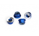 Lightweight and great looking, these 5 mm anodised aluminium flanged lock nuts are the perfect finishing touch for your vehicle. The serrated flange and nylon locking washer keep them snug on the wheel during even the most intense action. Sold as a set of four.