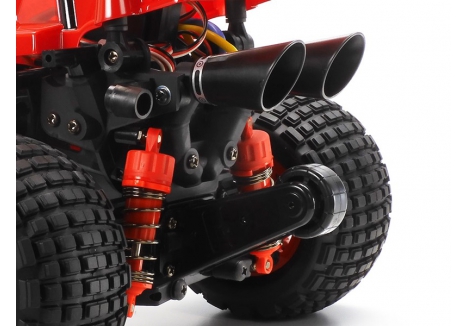 The Tamiya TAM58685 1/10 Comical Hotshot 4WD off-road car is built for excitement. Its gear-driven 4WD system, powered by a centrally mounted Type 540 motor, delivers consistent torque and traction. The sealed gearboxes protect internal components from dust and debris, while the integrated 3-bevel differentials ensure smooth cornering. The wide tread and oversized tyres contribute to stability, even during wheelies, making this buggy a joy to control whether you're a beginner or a seasoned R/C enthusiast.
