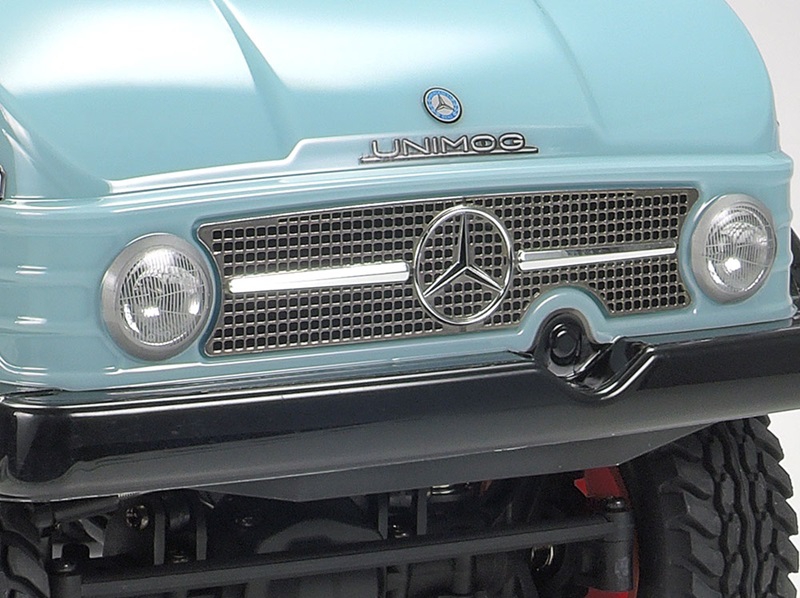 - Authentic Unimog 406 styling – curved hood, round headlights, and plated grille