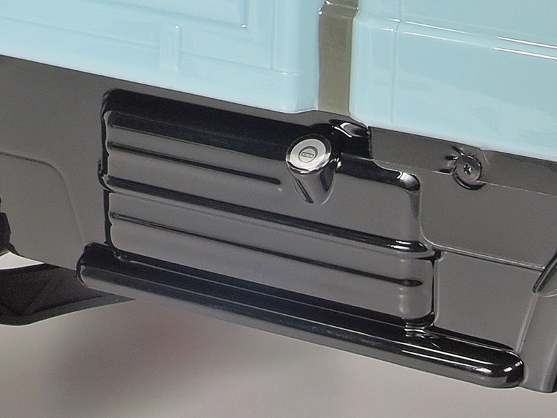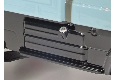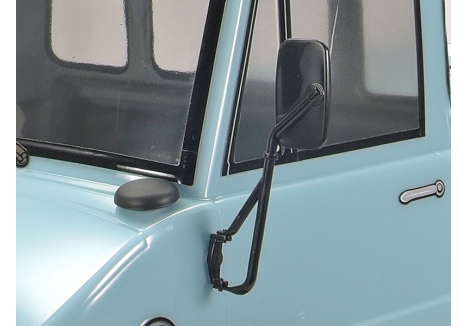 The distinctive form of the Unimog is accurately depicted in durable polycarbonate, with separate parts included for side mirrors and fuel tank, plus a metal-plated front grille and emblem.