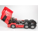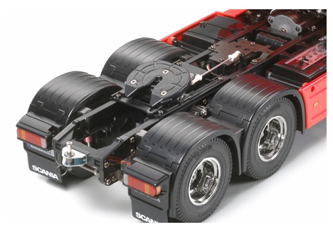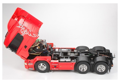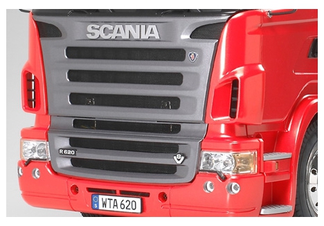 Trucks are essential components of many logistics networks around the world. One suchtruck which can be seen on the roads carrying large loads is the biggest and most powerfulScania truck, the R620. Tamiya is proud to add this wonderful piece of machinery the R6206x4 to the 1/14 scale R/C Tractor Truck lineup. This massive tractor truck features 3-axleand is approximately 458mm long. Beautifully reproduced cabin tilts forward separatelyfrom the fenders, just like the actual truck. The accurately modeled fenders themselves areremovable for realistically depicting a low carrying load. Realistic chassis and suspensionfurther add to the imposing form of this unique model.