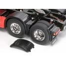 The 1/14 scale Scania R620 truck with 3-bevel differential gears, friction dampers, and 3-piece rear fenders features a leaf spring rigid suspension that absorbs terrain vibration and maintains consistent wheel contact. Friction dampers simulate shock absorption, allowing the truck to navigate uneven surfaces with stability. The dual rear axles are each equipped with a differential, enabling smooth cornering and balanced power distribution. This configuration supports realistic driving dynamics, especially when towing trailers. The 0° caster, camber, and toe angles ensure neutral handling characteristics, making the truck predictable and easy to control during scale operations.